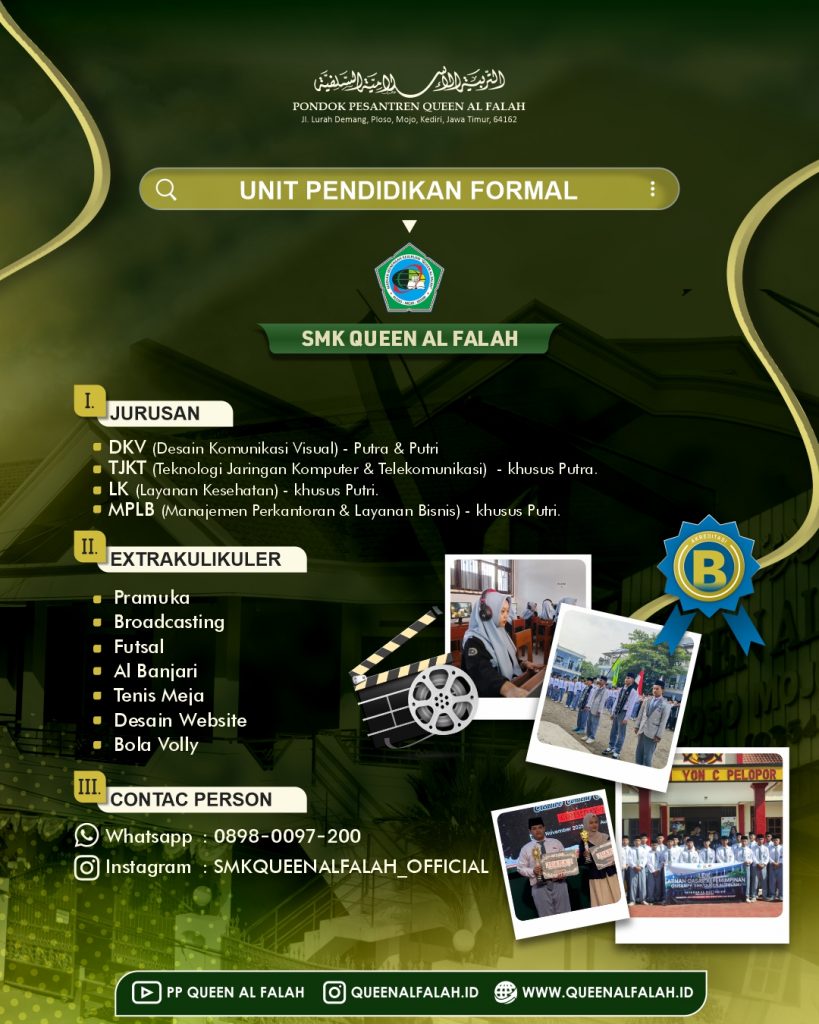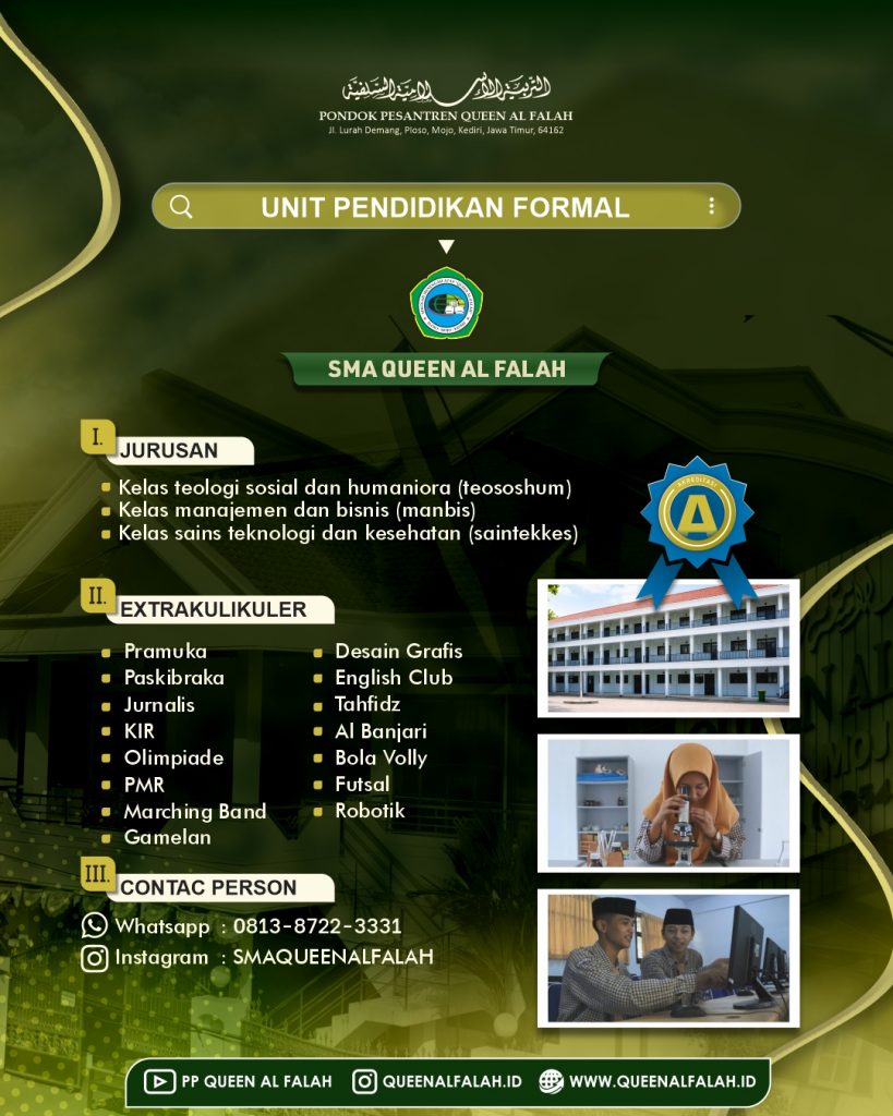 Pondok Pesantren Queen Al Falah adalah salah satu pondok cabang dalam naungan PP. Al Falah Ploso yang Didirikan oleh Romo KH. Munif Djazuli, salah satu putra Almaghfurlah KH. Djazuli Ustman.
